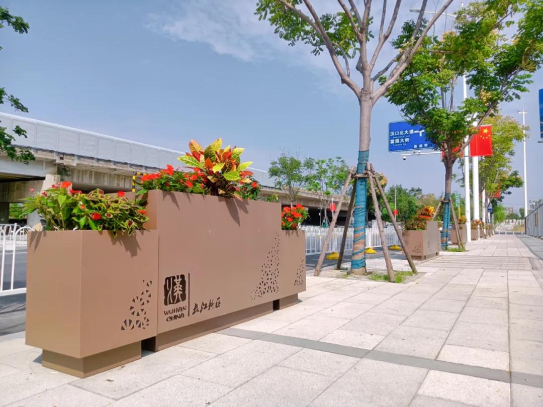 在長江新區(qū)的主干道上,一排排整齊的花箱內(nèi)栽滿了盛開的花卉,色彩斑斕,令人賞心悅目。特別是在新區(qū)的標(biāo)志性建筑前,精心設(shè)計(jì)的花壇更是吸引了眾多市民駐足觀賞。