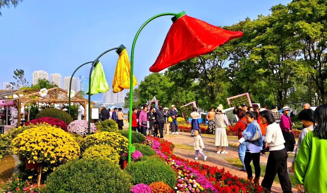 在“菊花臺”景觀區(qū),更是將創(chuàng)意與美學(xué)推向了新的高度,引領(lǐng)訪客登高望遠(yuǎn),俯瞰展區(qū)全貌,盡享打卡留念的無限樂趣。